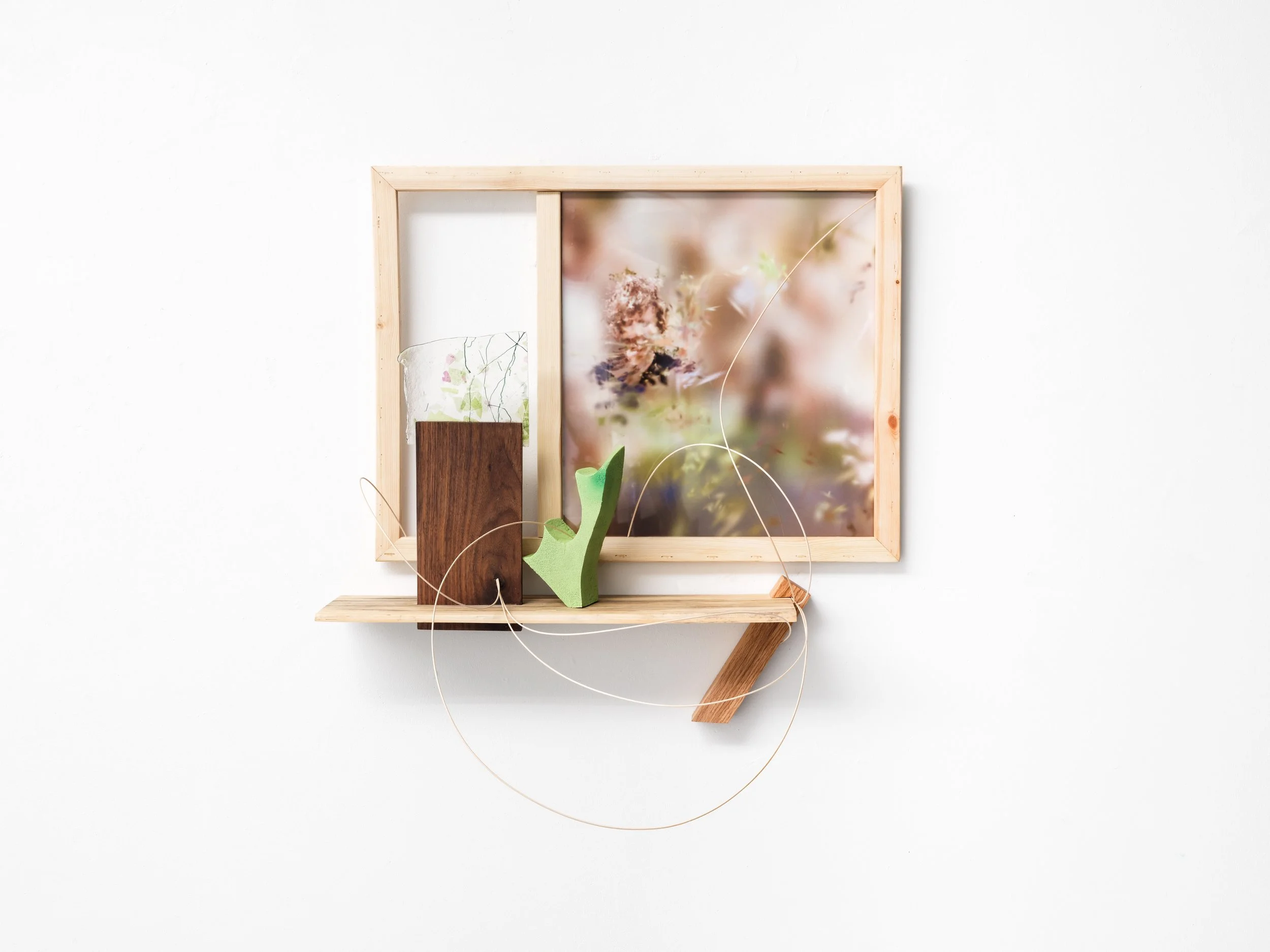 Marred photography via glass bottle filters, sculpturally framed.